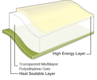 Ethy-LyteTM 25HDXRG is a biaxially oriented polyethylene film - one side heat sealable and one side treated. 25HDXRG is a clear sealant film used in adhesive and extrusion laminations. Laminating to an Ethy-LyteTM BOPE print web enables a fully recyclable All PE structure.